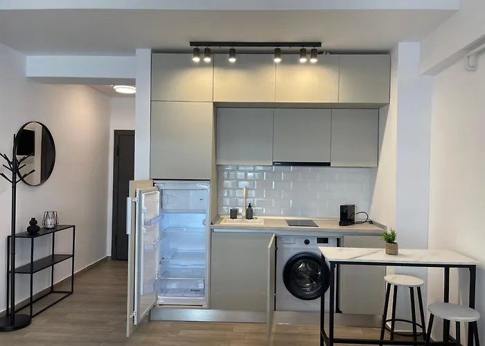 Dieses 52 m^2 große Apartment bietet eine komplette Küche mit einem Kühlschrank und Küchenutensilien für Ihren Komfort. Für einen bequemen und entspannenden Aufenthalt in dieser Unterkunft stehen den Gästen Ausstattung zur Kaffee- & Teezubereitung zur Verfügung. Zu den Restaurants Restaurant mamaia nord und Hanul Cu Peste mit sind es ca. 12 Gehminuten.